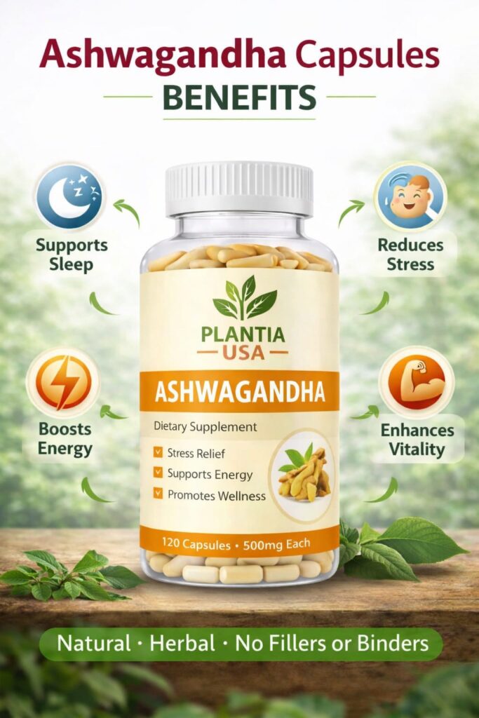 “Ashwagandha Capsules – Natural Stress Relief & Energy Booster | 120 Veg Capsules | Immunity & Focus Support”