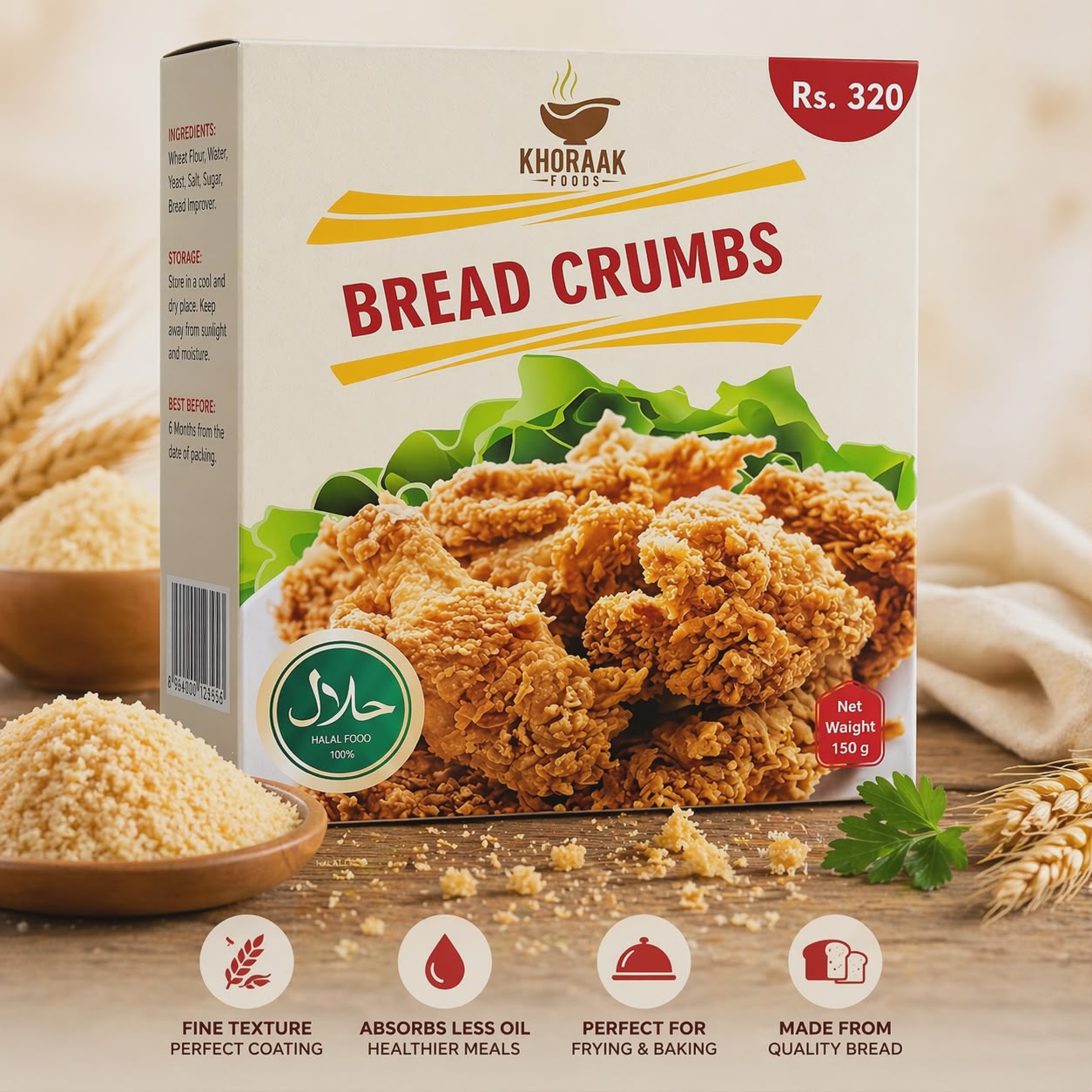 Khoraak Foods Bread Crumbs 150g – Premium Quality Fresh Crumbs for Crispy Coating & Cooking
