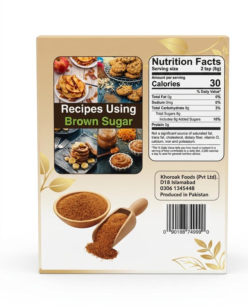 Khoraak Foods Brown Sugar is a premium quality natural sugar with a rich caramel flavor and soft texture. It is perfect for baking cakes, cookies, desserts, and sweetening tea or coffee, adding moisture and depth of flavor to your recipes.
