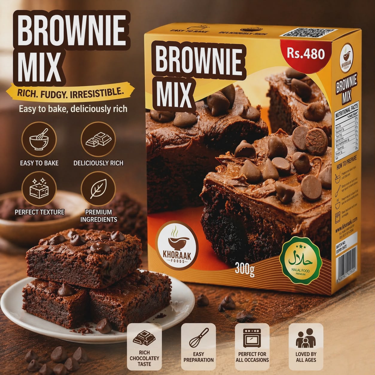 🍫 Khoraak Foods Brownie Mix – Premium Chocolate Brownies Ready Mix | Soft, Fudgy & Delicious