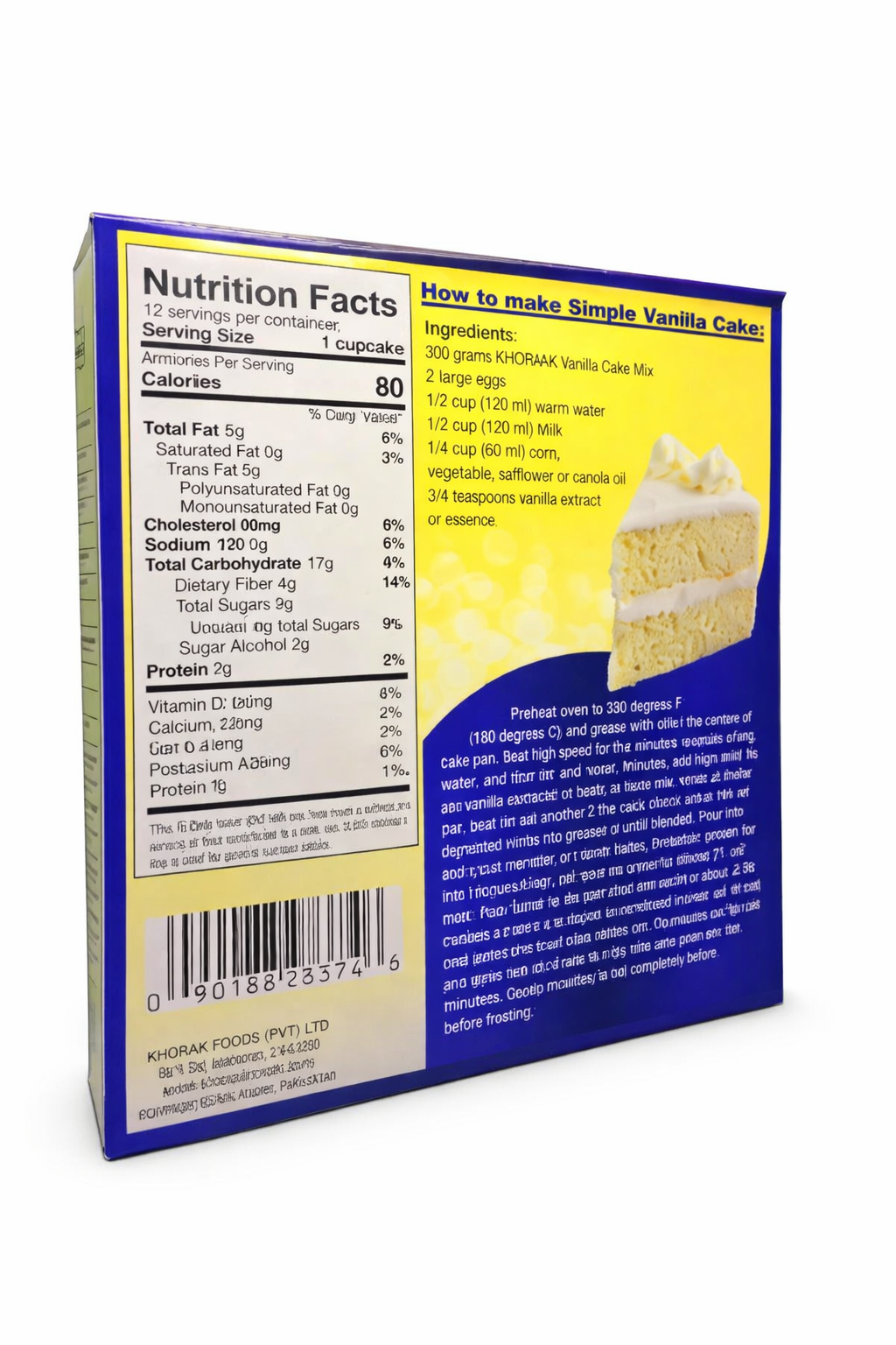 With Khoraak Foods Vanilla Cake Mix, you can easily bake bakery-style cakes at home and enjoy a delightful dessert with family and friends.