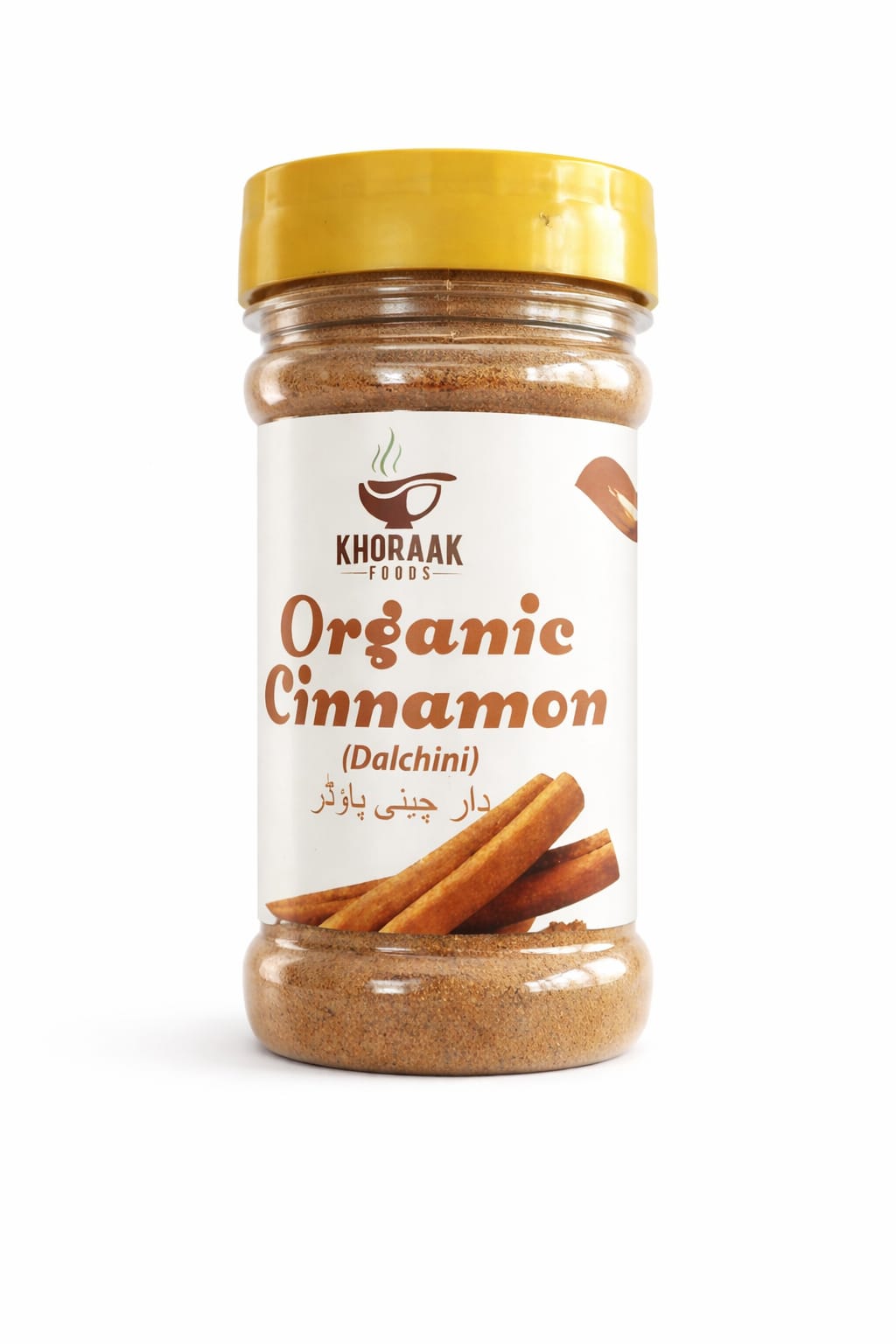 Khoraak Foods Organic Cinnamon Powder (Dalchini) is a 100% pure and natural spice that adds rich aroma and flavor to tea, coffee, baking, and cooking. Moreover, it supports health and digestion. Packed fresh for premium quality.