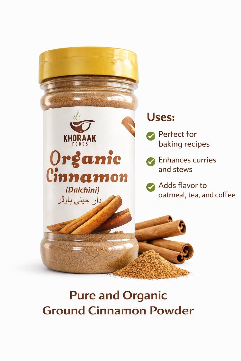 Cooking becomes special with the right ingredients. Therefore, Khoraak Foods Cinnamon Powder helps you create delicious and healthy meals every day.