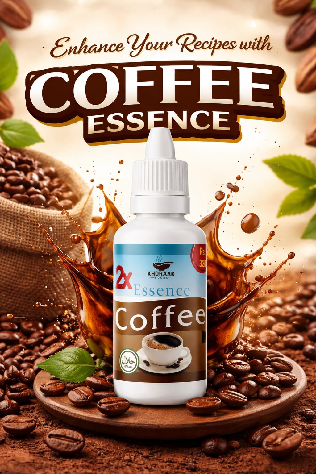 Khoraak Foods Coffee Essence 2X Strong is a concentrated liquid coffee flavor. Easy to use and halal certified.