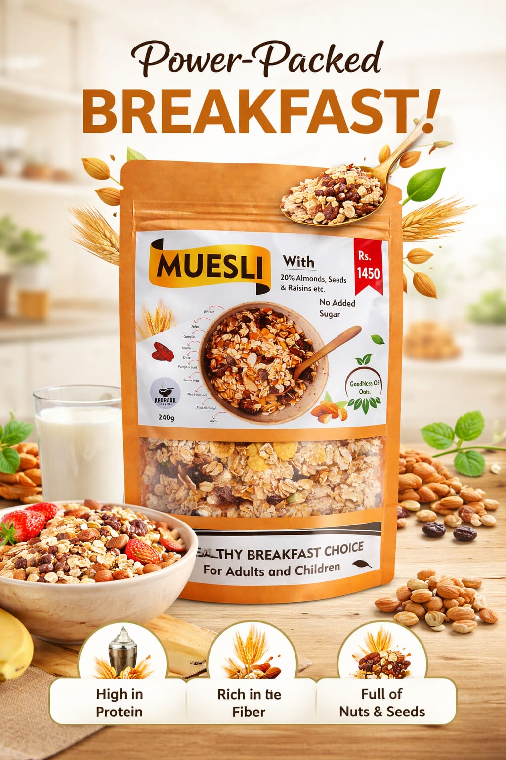 Looking for the best muesli ? Khoraak Foods Fruit & Nut Muesli offers a healthy, high-fiber breakfast for energy, weight loss, and daily nutrition.
