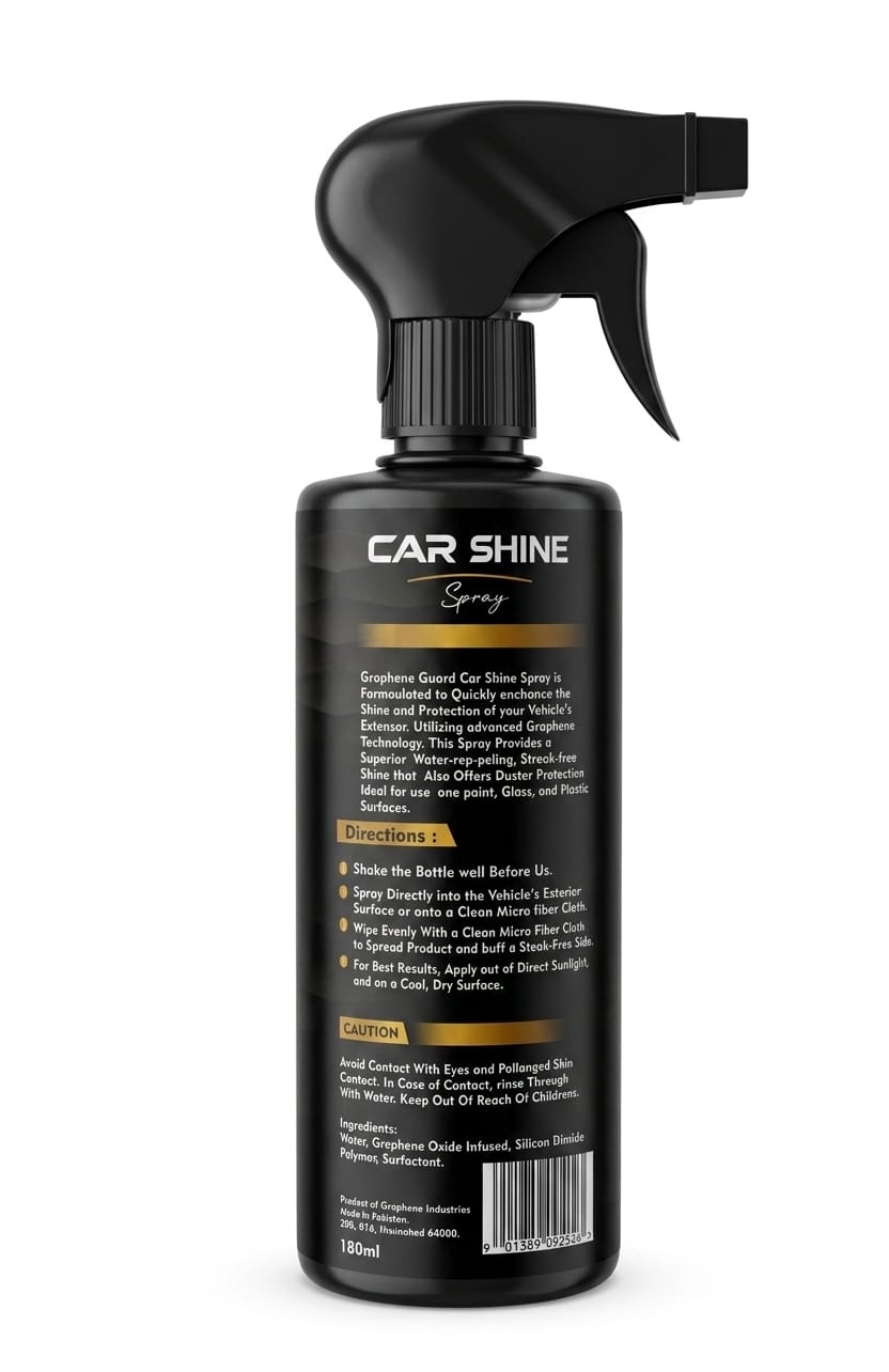 Graphene car shine spray Pakistan is the latest innovation in car care. Graphene Guard Car Shine Spray delivers a high gloss finish; therefore, your car looks brand new. Moreover, it provides scratch protection, so your vehicle stays protected from daily wear.