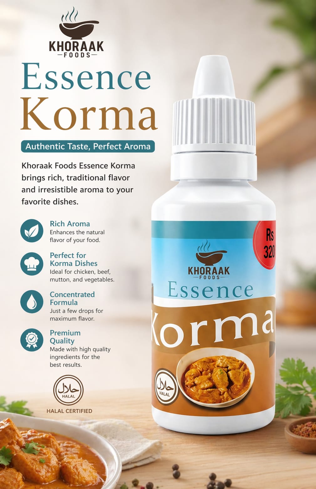 ₨320Add to cartAdd a royal floral aroma to your dishes with Khoraak Foods Kewra Essence 20ml. Perfect for biryani, desserts & baking.